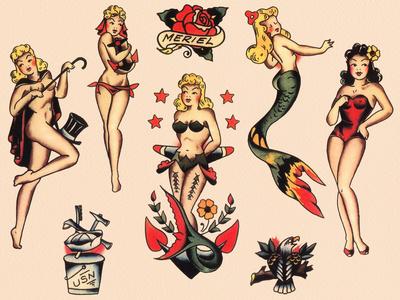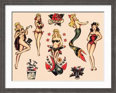 Mermaids And Dancers Authentic Mid Century Tattoo Flash By Norman Collins Aka Sailor Jerry Posters Piddix Allposters Com